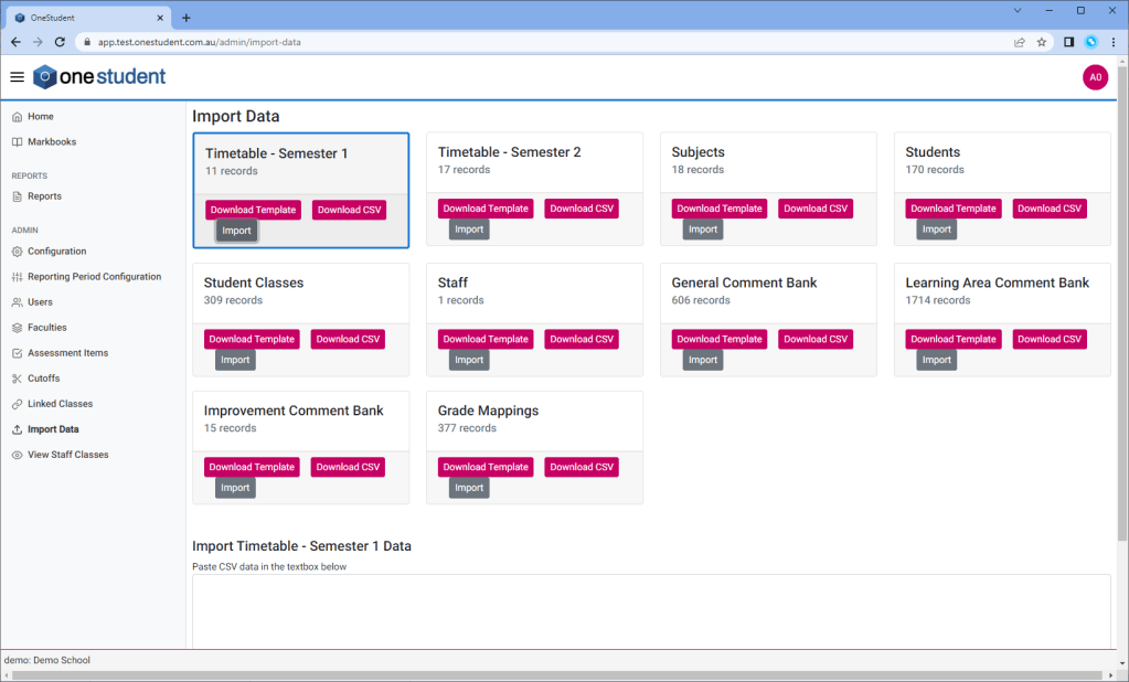 Example of OneStudent – Import Data page: