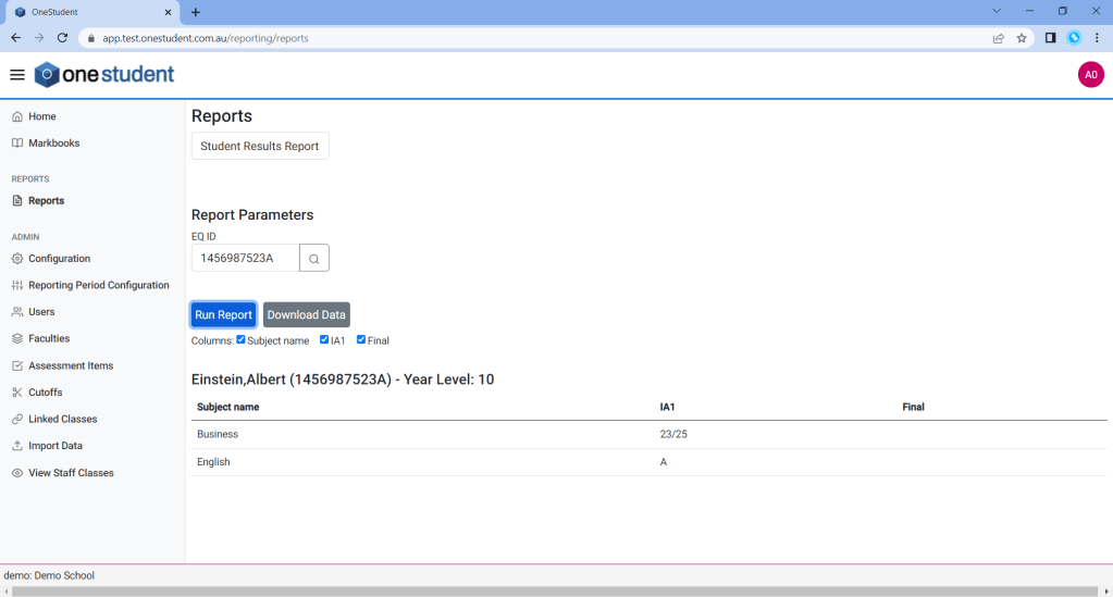 - Student Results Report,