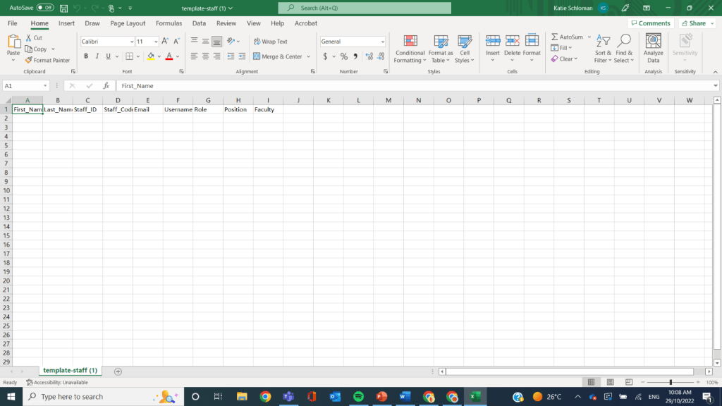 Example of OneStudent – Import Data – Download Template in Excel: