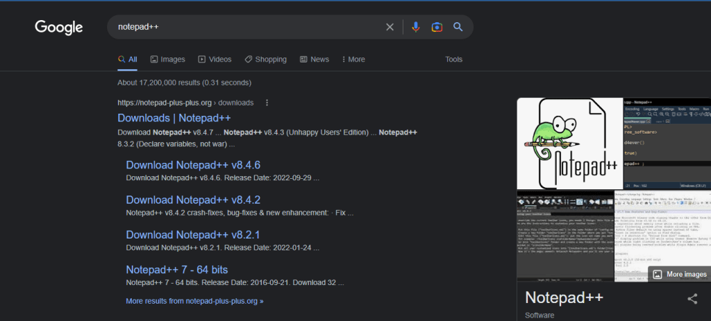 Search Notepad++ and Select Downloads