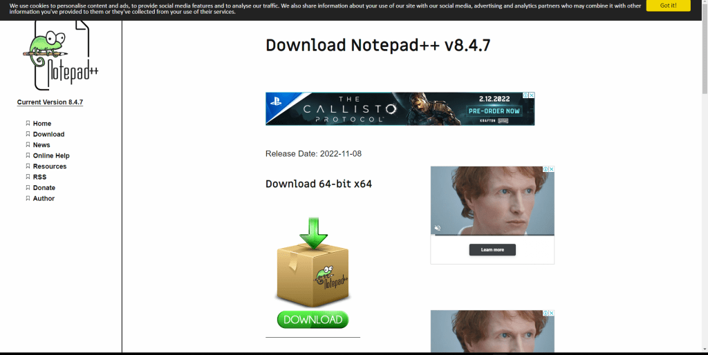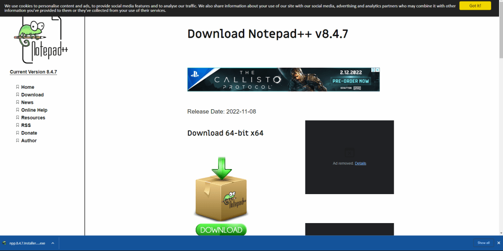 Select the most recent edition, this case it is Notepad++ v8.4.7