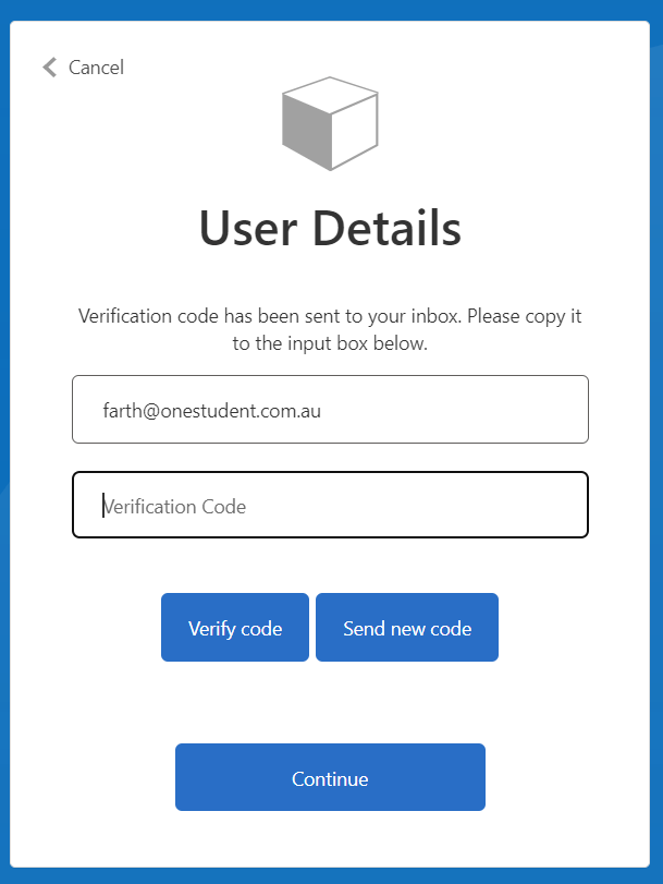 5. Click ‘Verify code’ and then click ‘Continue’.