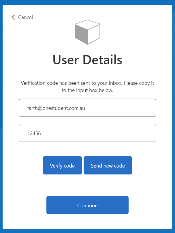 The ‘Verification Code’ will be sent to email address you entered in the ‘User Details’ ‘Email Address’ field.