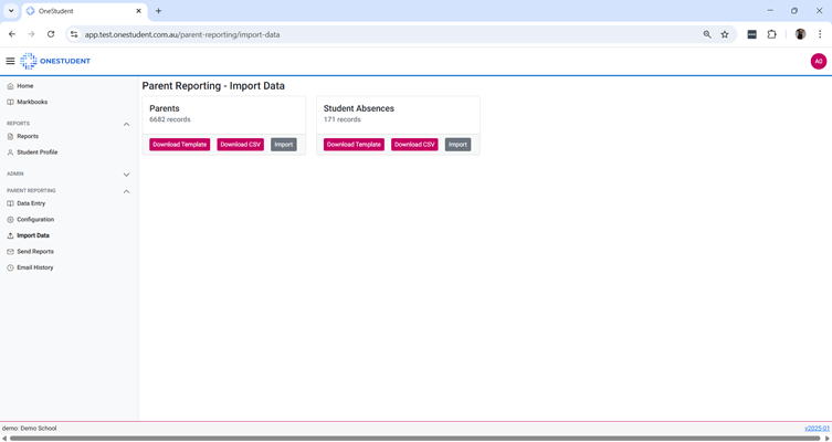 Enables bulk data upload into OneStudent from external systems (e.g., OneSchool). Administrators can import parent details and student absences data using structured CSV files. This option streamlines data population and ensures accuracy by reducing manual entry.