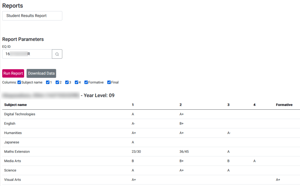 | EQ ID | Enter or select the EQ ID of the student you wish to run the report for |